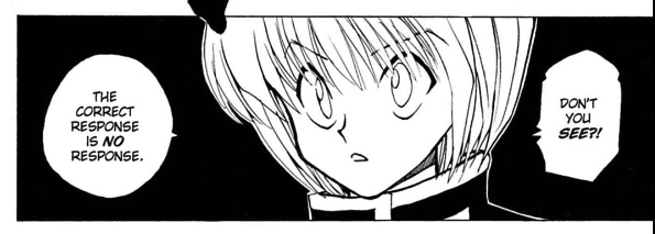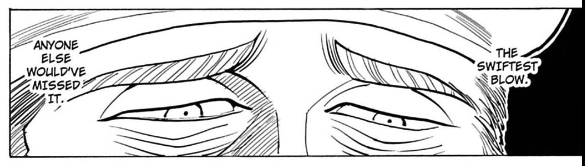 THE SWIFTEST BLOW. ANYONE ELSE WOULD’VE MISSED IT. おそろしく速い手刀 オレでなきゃ見逃しちゃうねHunter x Hunter, Vol. 11: Next Stop: Meteor City–The Junkyard of the World (English Edition) P54より