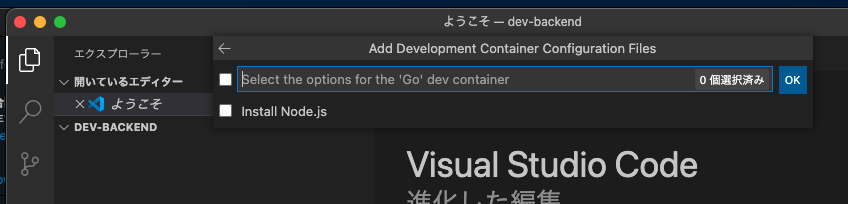 dev-frontend)を作成しVSCodeで開きます。 - VSCodeからコマンドパレットを開き、