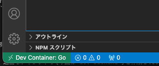 開発用のコンテナに接続した場合、左下が以下のように表示されます。